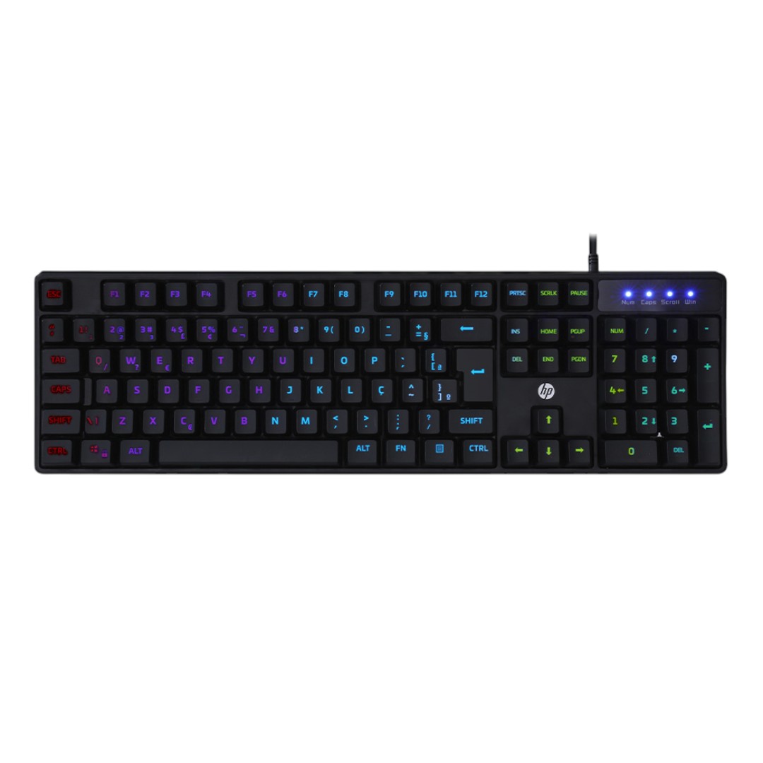Teclado Gamer Hp Usb Membrana Com Iluminacao Led Preto K300 Idioma Português Brasil