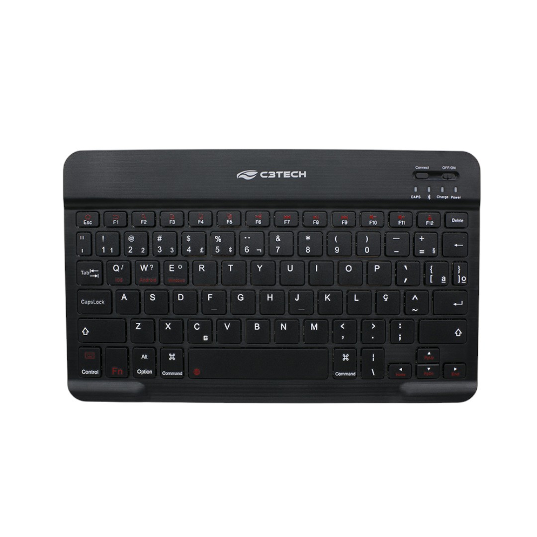 LEDs indicadores de CAPS, conexão, carregamento, e funcionamento